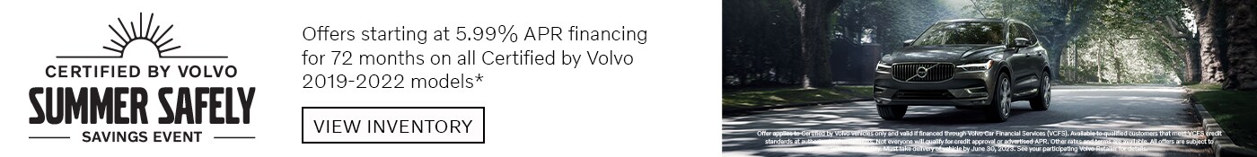 3.99% APR applies to any Certified Preowned 2024 Volvo. No down payment required. Offer available to qualified customers that meet Volvo Car Financial Services (VCFS) credit standards at authorized Volvo Cars Retailers. 3.99% APR Financing up to 72 months at $18.41 per month per $1,000 financed. Other rates and terms are available. Actual down payment will vary with APR and credit qualifications. Not everyone will qualify for credit approval or advertised APR. Advertised financing does not include taxes, title, registration, and license fees, insurance, maintenance, and other retailer fees. All offers are subject to vehicle availability. Must take delivery of vehicle between July 1, 2025 and July 31, 2025. See your participating Volvo Cars Retailer for details. **Restrictions apply. The A-Plan by Volvo program is exclusively for active employees of select business partners, fleet partners, and other organizations all having a unique relationship with Volvo. Additional purchase eligibility is extended to the eligible individual's spouse and/or members of their immediate household. The buyer/lessee and the Volvo PIN participant's legal home address must match the sales or lease contract. Co-buyers or co-lessees are permitted. While supplies last, subject to availability. Volvo Car USA reserves the right to exclude or modify model or trim eligibility at any time. Must take new retail delivery within 90 days of PIN creation date. Only one (1) Volvo PIN allowed per vehicle. Limit two (2) Volvo PINs per participant per year. The Authorized Volvo Car retailer determines final sale price, base MSRP does not include packages, options, destination charge, port installed accessories or dealer accessories (if applicable). Purchase Bonus, Lease Bonus, Loyalty Bonus, Conquest Bonus and/or Volvo Allowance when and if available are subject to change at any time and may vary from month to month and may differ based on geographic location. Not compatible with other A-Plan by Volvo or Public Affinity Offer PINs. Volvo Car USA reserves the right to discontinue this offer at any time without notice. Vehicles may be shown with optional equipment at an additional cost. European specification vehicles may be shown. See Volvo Car retailer for complete details and eligibility. ***Warranty is valid for 12 months/unlimited mileage after the expiration of 4-year/50,000-mile new-vehicle Basic Warranty, or 12 months from your Certified by Volvo purchase date, whichever occurs later. Mileage is unlimited.