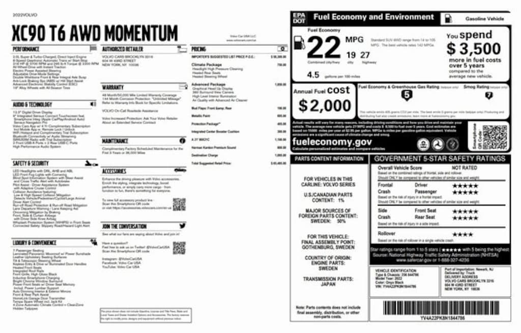 - Emergency communication system: Volvo Cars App w/4 Year Subscription