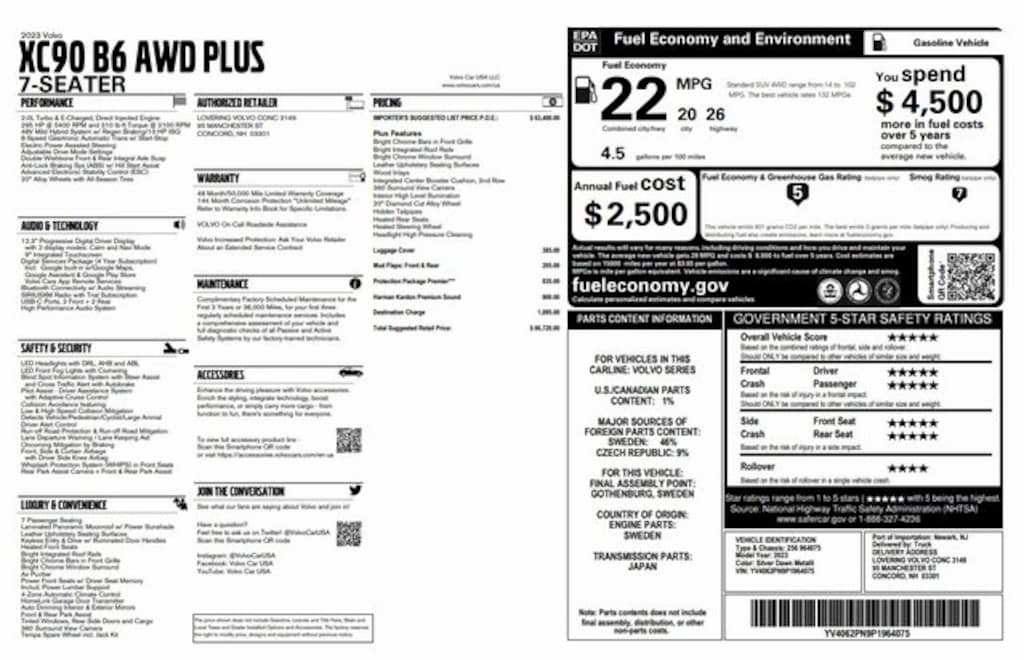 * 1-Year complimentary Volvo On Call app. Remote climate control, locks, fuel, maintenance & driving journal. Vehicle History Report with Buyback Guarantee. Includes Trip Interruption Reimbursement.