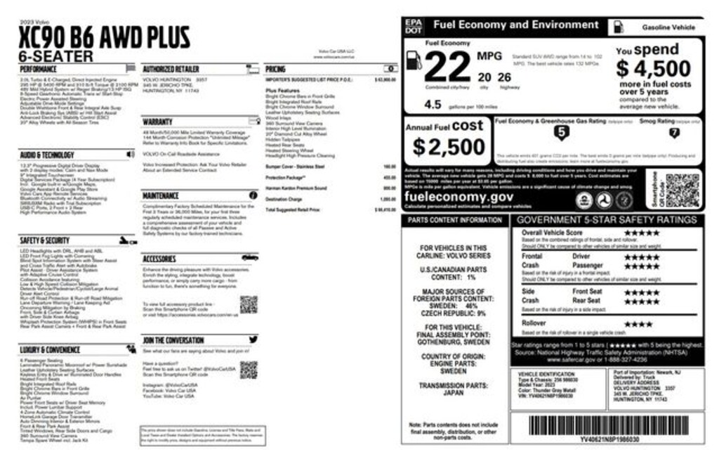PLUS Trim Level includes: Leather Upholstery, 360 Surround View Camera, Pilot Assist with Adaptive Cruise COntrol, Heated Front & Rear Seats, Heated Steering wheel and more! harman/kardon Premium Sound System, 20" Diamond Cut Alloy Wheels.