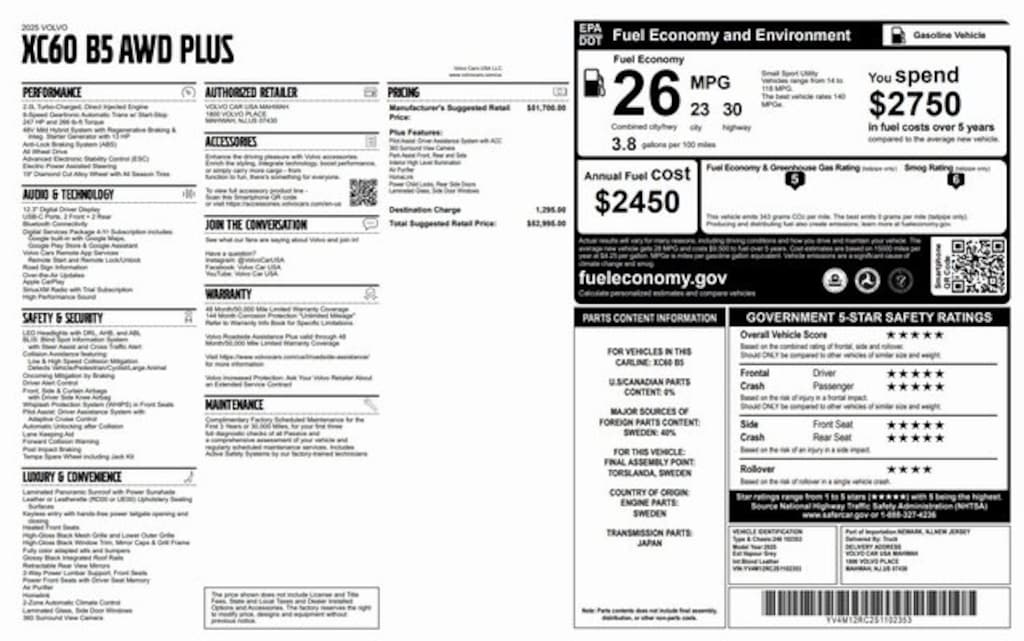 Bernardi Volvo Cars Natick is pleased to offer this 2025 Volvo XC60 B5 AWD Plus.